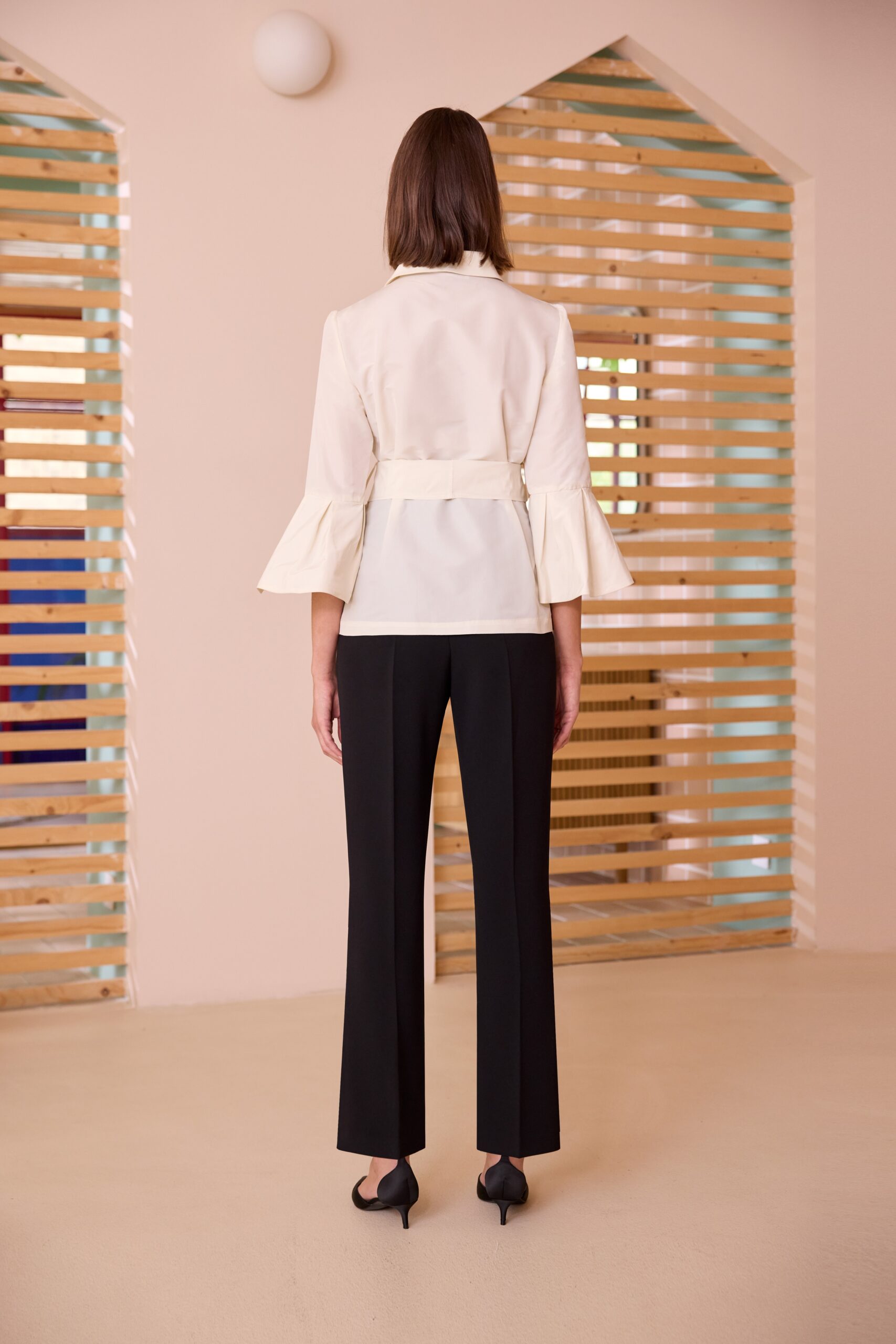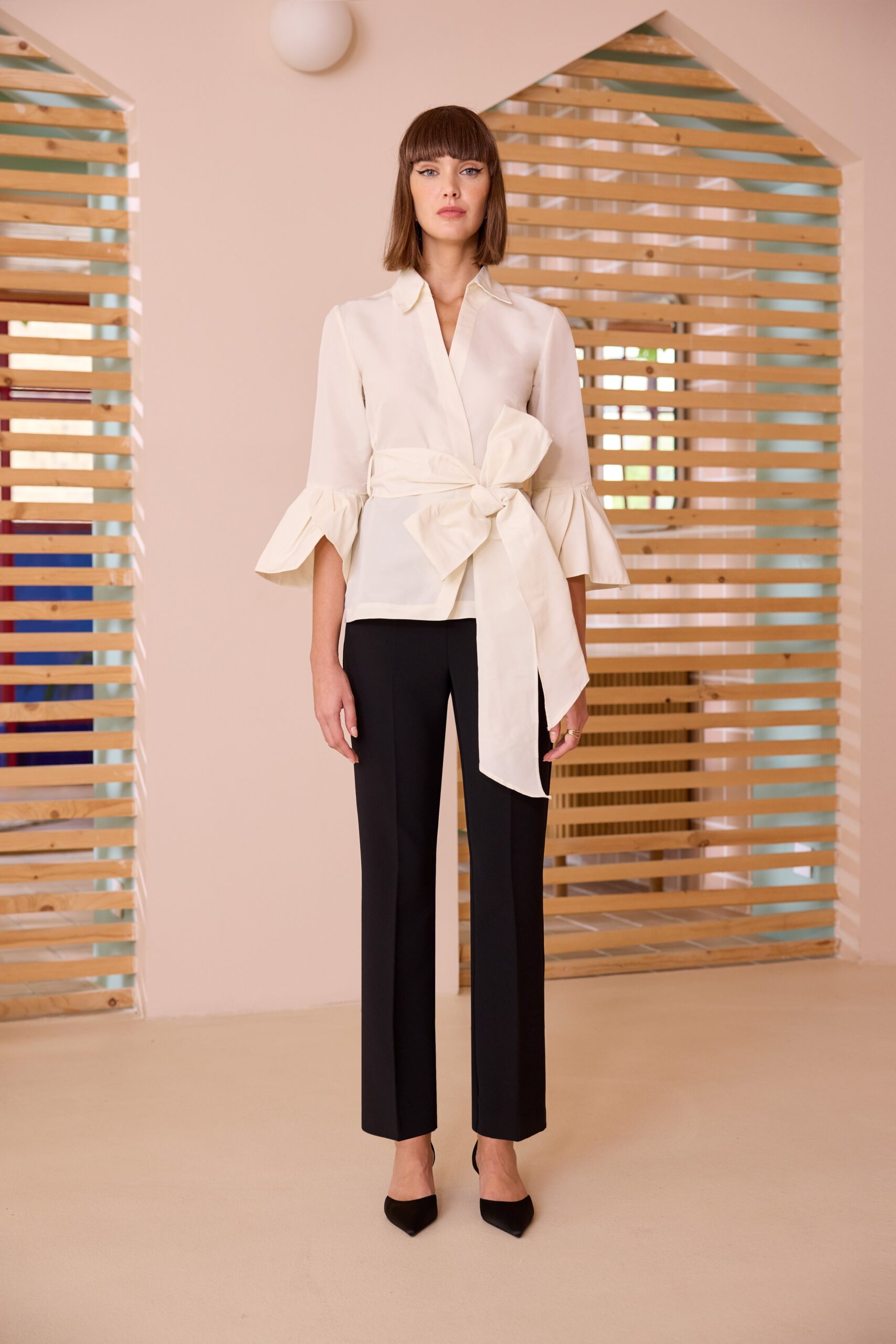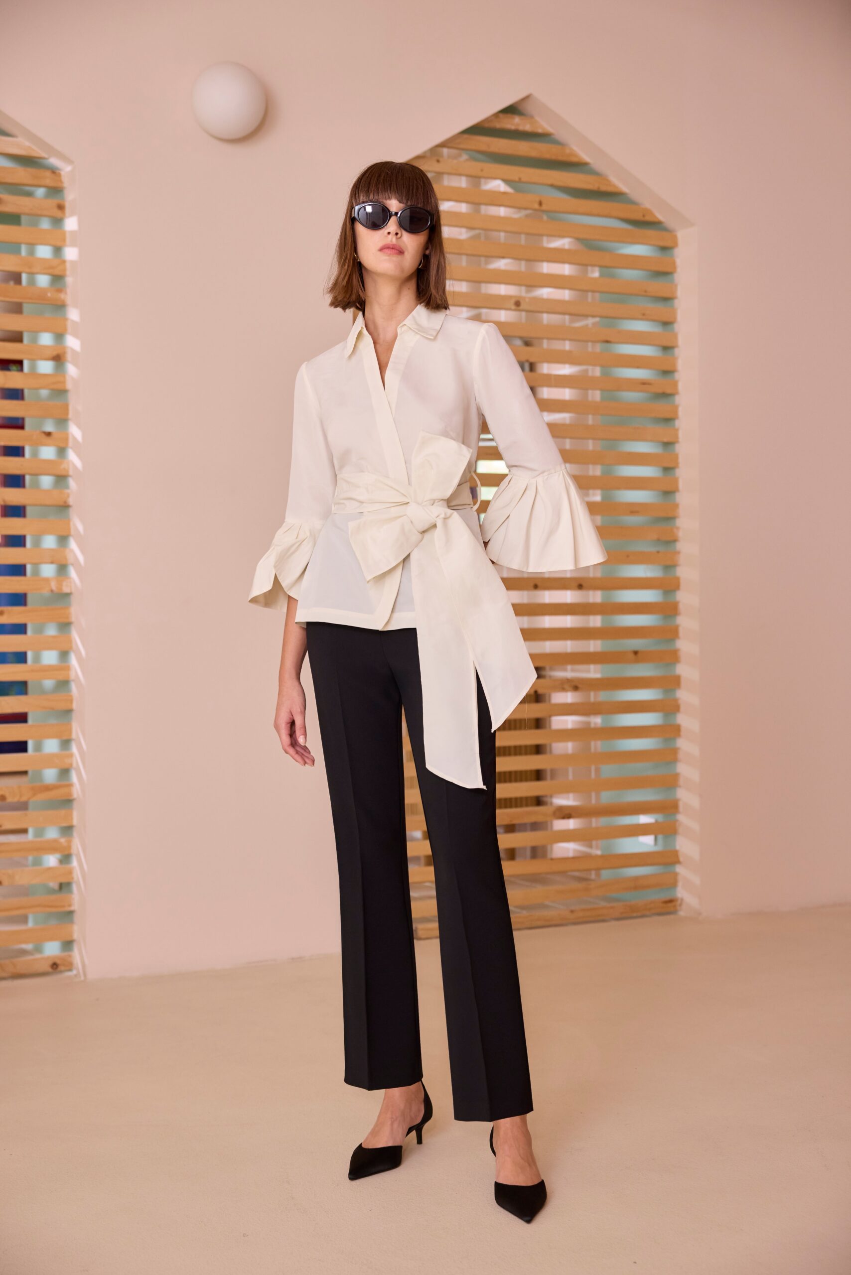 Camicia con fiocco e maniche volant 160 42/46Salmone